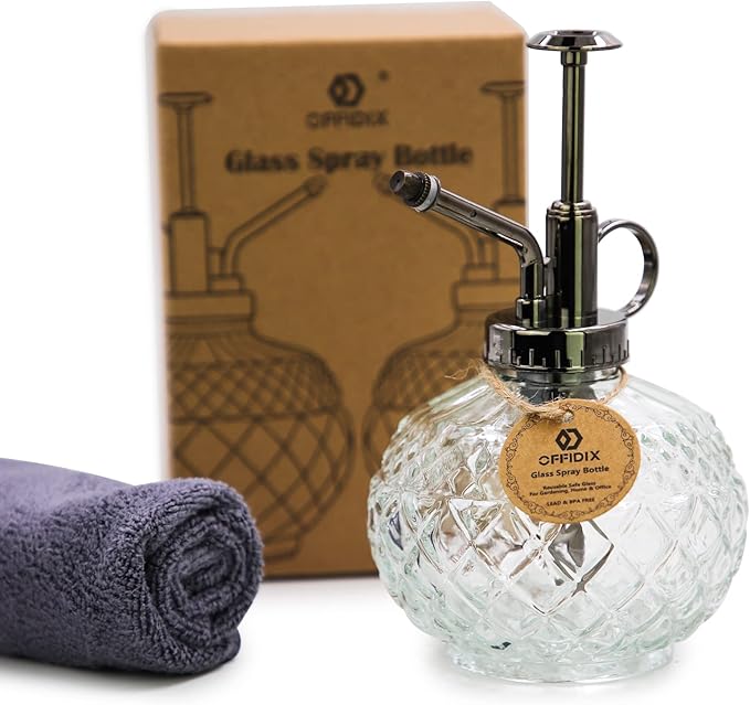 OFFIDIX Plant Mister, 300ML Vintage Glass Spray Bottle with Plastic Top Pump, Small Decorative Spritzer Watering Can for Indoor Outdoor House Plants (Transparent)