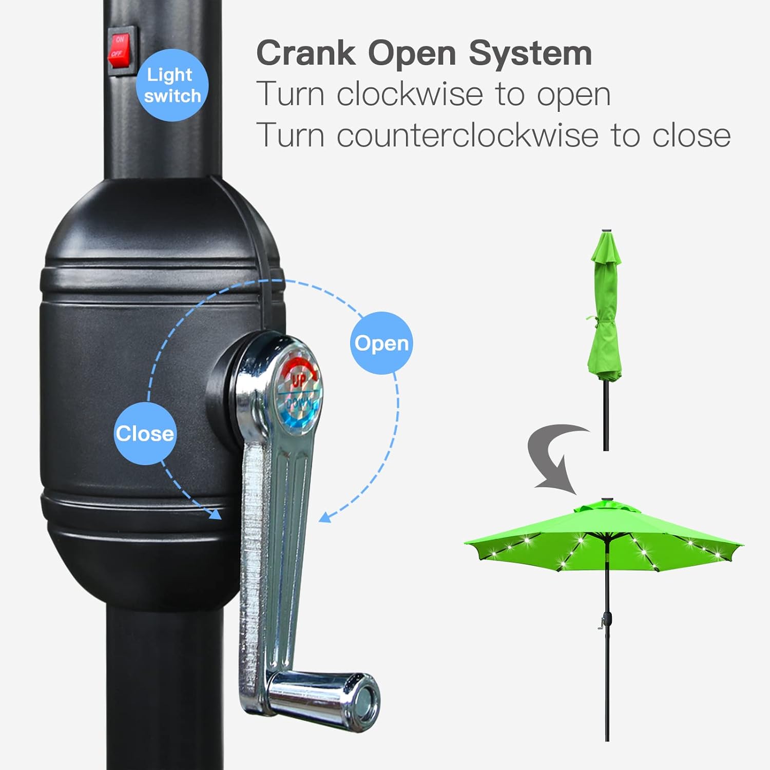 Sunnyglade 9' Solar LED Lighted Patio Umbrella with 8 Ribs/Tilt Adjustment and Crank Lift System (Grass Green)