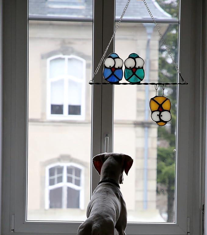 • 🦉【CUTE ORNAMENTS】Stained glass bird is made of blue, green, yellow colored glass, Three cute and naughty owls will make your life more interesting.