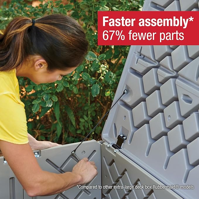 Rubbermaid Medium Resin Outdoor Storage Deck Box (74 Gal) Weather Resistant Gray Deck Organization for Home/Backyard/Pool Chemicals/Toys/Garden Tools/Porch/Patio Cushions