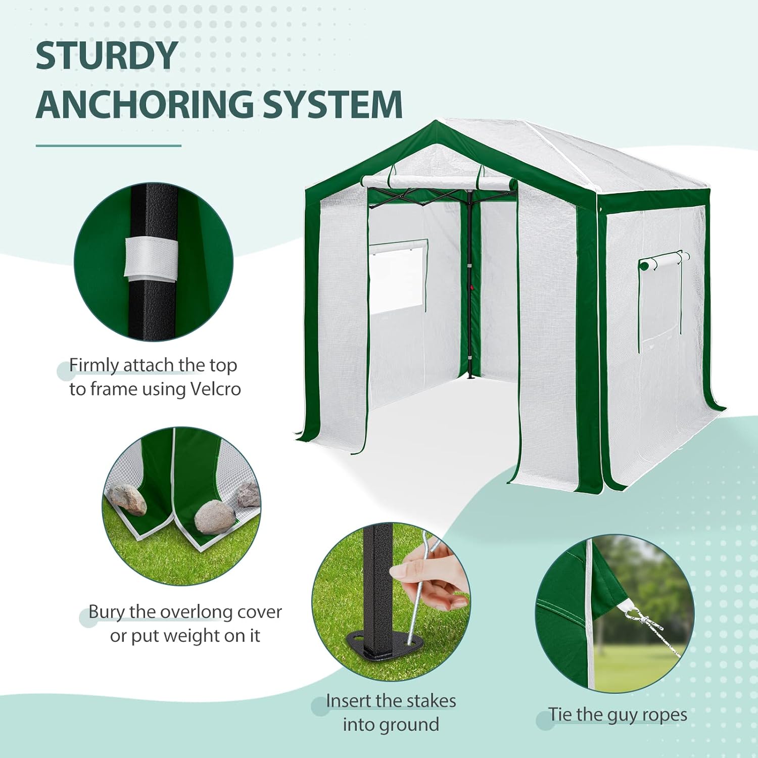 EAGLE PEAK 8x8 Portable Walk in Greenhouse with Polyester Reinforced Corners, Heavy Duty Instant Pop Up Indoor Outdoor Green House, Front Roll Up Zipper Entry Door and Mesh Windows, Green/White