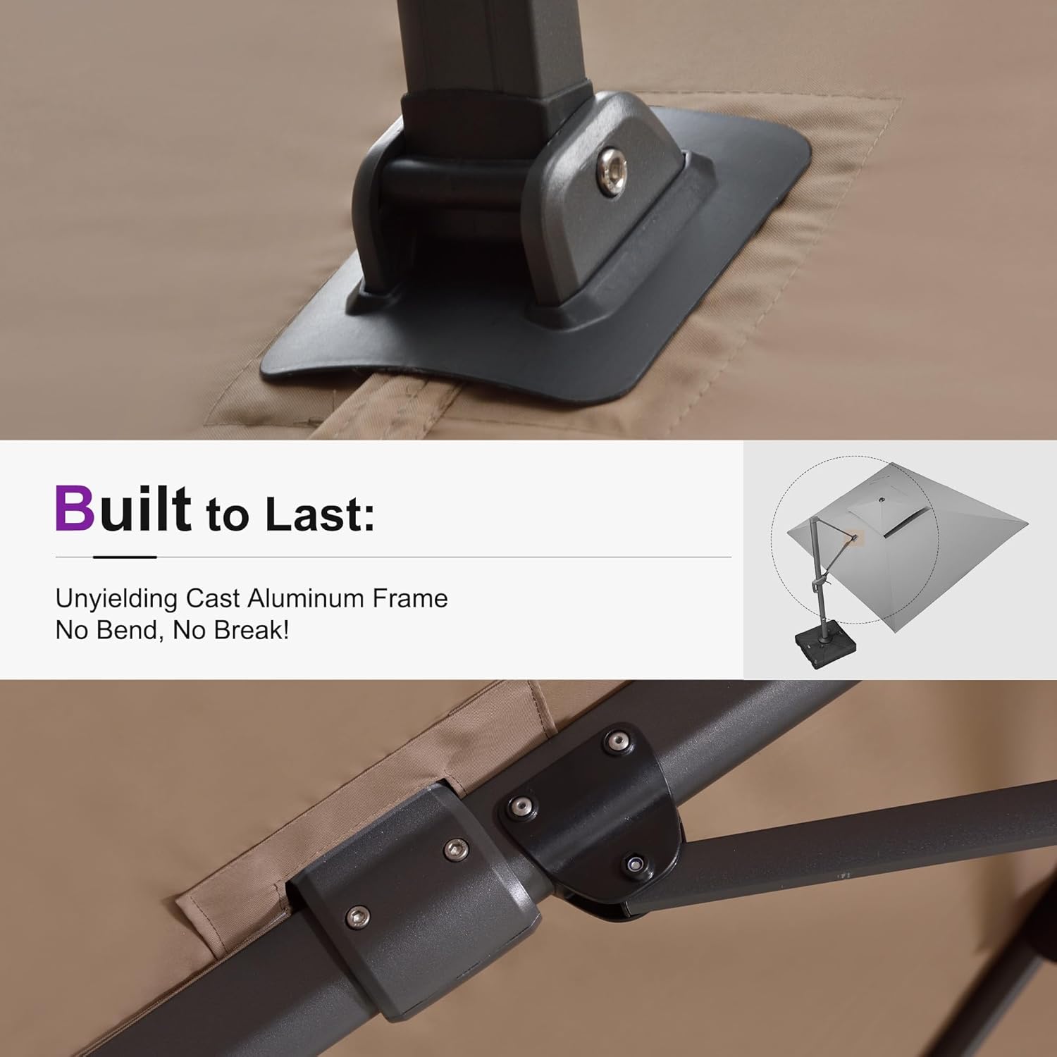 PURPLE LEAF 10FT Cantilever Outdoor Umbrellas Large Patio Umbrella Hanging Double Top Square Offset Umbrella with 360°Rotation Tilting Umbrella Outdoor Patio, Taupe