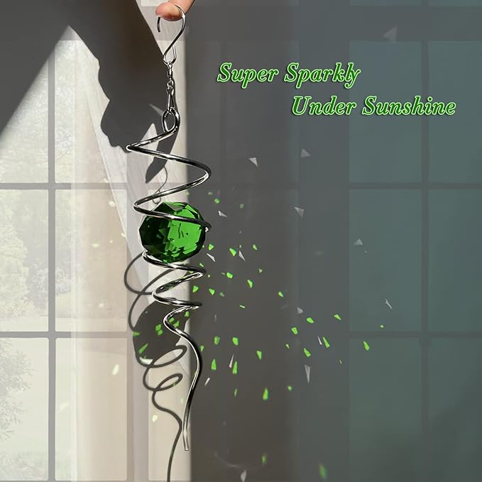 - 【PREMIUM CRYSTAL SUNCATCHER】The spiral with crystal is a special sun catcher rainbow maker, it’s Super Sparkly under sunshine. You can also add a motor(not include) to let the spiral to spin ,while spiral tail rotating (it can’t spin by itself.), the crystal ball seems to move up and down like floating and dancing in air while spiral tail rotating, presents the magical visual illusion.