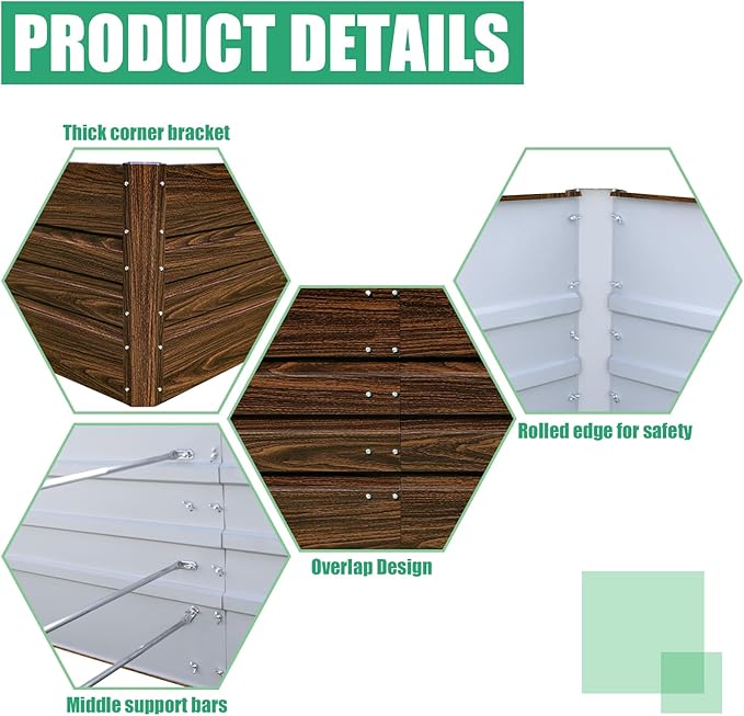 • DURABLE MATERAL: Made of stable thickened galvanized metal, make the raised bed more textured and beautiful.