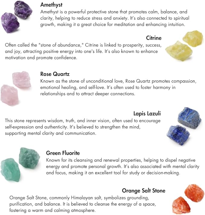 - NATURAL STONES - Natural stones can have a positive impact on your life. Their beauty can brighten up any space if you use them as decor on your mantle or side tables. It enhances your meditation.