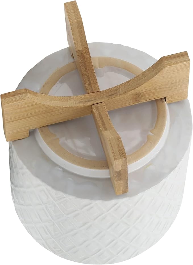 - Planter comes in a textured diamond design that is white in color, sitting on a lightly colored wooden base. The simple design and coloring makes it a classic staple for any location.
