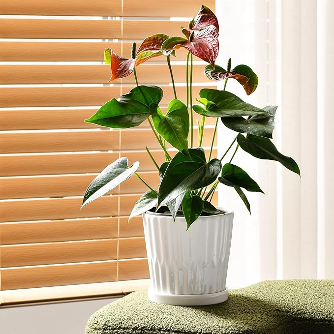 • [Drainage System]: Each ceramic flower pot has a drainage hole at the bottom with a saucer attached, which helps reduce water loss