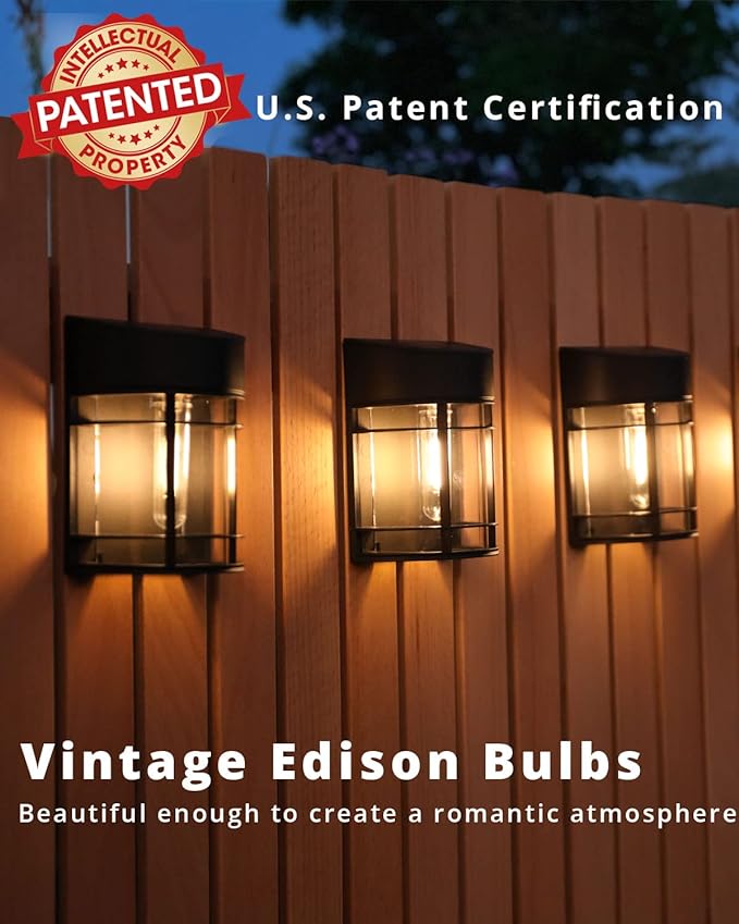 - Solar Lights Outdoor- Solar fence lights aren’t just give off beautiful Warm lighting for illuminating the area surrounding your fence, they can also help to spruce up the overall aesthetics of your home yard. Design with U.S. Patent Certification