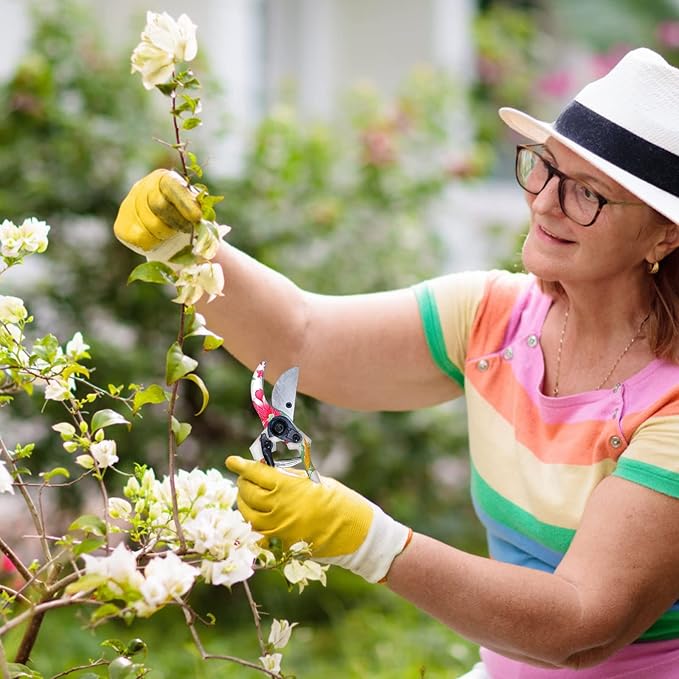 - Garden Gloves and Garden Pruning Shears - The gardening shears are made of high aluminum alloy material and can cut branches smoothly and are durable, and the garden tool set with floral pattern will give you a pleasure gardening work.