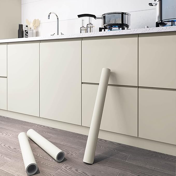 Dimoon 236''x15.7'' Cream Skin Peel and Stick Wallpaper Contact Paper Modern Self Adhesive Wall Paper Removable Renter Friendly Textured Solid Color Cabinet Vinyl Roll (236''x15.7'',Cream Skin)