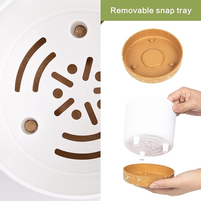 - EASY DRAIN HOLES & TRAY: Flower Pots drain excess water from drainage holes to the bottom tray for storage and easy cleaning, preventing water overflow and flooding. Recommended to shop a layer of filler in the bottom of the pot