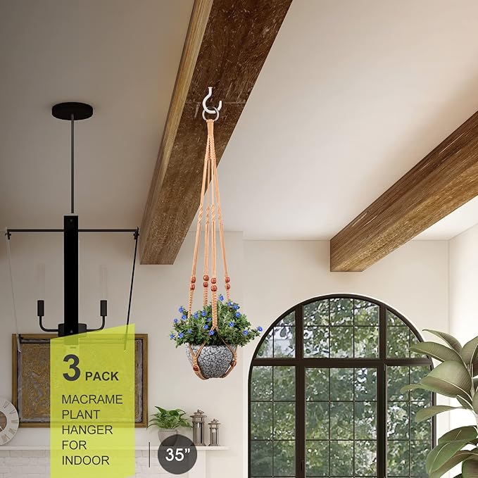 - What You Get & Buy with Confidence: 3 pack plant hangers and 6 pcs hooks kits (3 Hooks and 3 Ceiling Hooks) which are perfect gift for gardening lovers. BUY YOURS NOW and make a Boho fashion statement in your home. In case of any question, please contact us without any hesitation to solve.