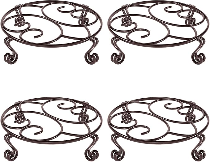 Yimobra 4 Pack Plant Stand for Flower Pot Heavy Duty Potted Holder Indoor Outdoor Metal Rustproof Iron Garden Container Round Supports Rack for Planter (4PC Brown 9.4 x 2 IN)