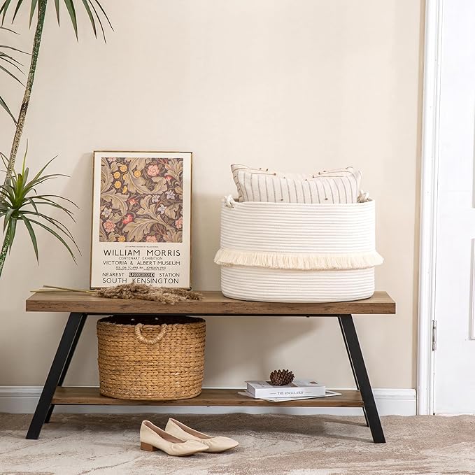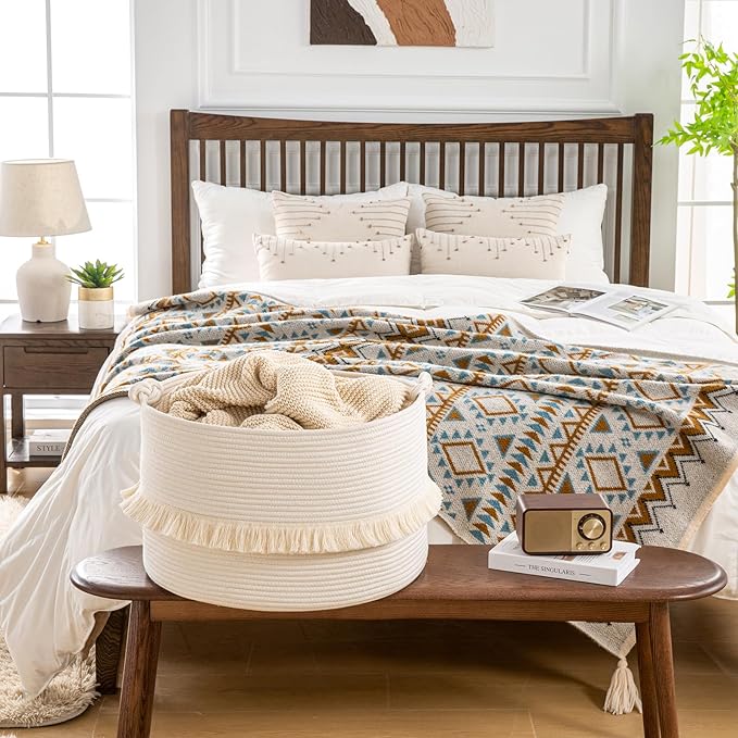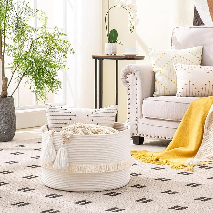 - 【LARGE SIZE】: 20"x20"x13",which is a perfect storage basket in living room for blankets, throw pillows, comforter or cushions,blankets, baby diapers or toys. Use for toy storage organization, toy basket, throw basket, laundry basket, etc. to keep your living space neat and tidy!