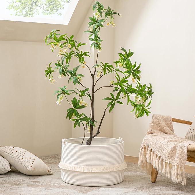 KAKAMAY Large Blanket Basket (20"x13"),Woven Baskets for storage Baby Laundry Hamper, Cotton Rope Blanket Basket for Living Room, Laundry, Nursery, Pillows, Baby Toy chest (White)