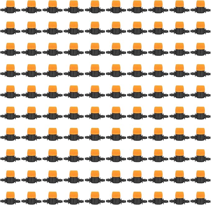 TOPINCN 100pcs Barbed Ball Valve, Drip Irrigation Universal Barbed Valve Mini Pipe Water Valve Through Type Valve Misting Tube Valve for Garden Seeding Cultivation Irrigation