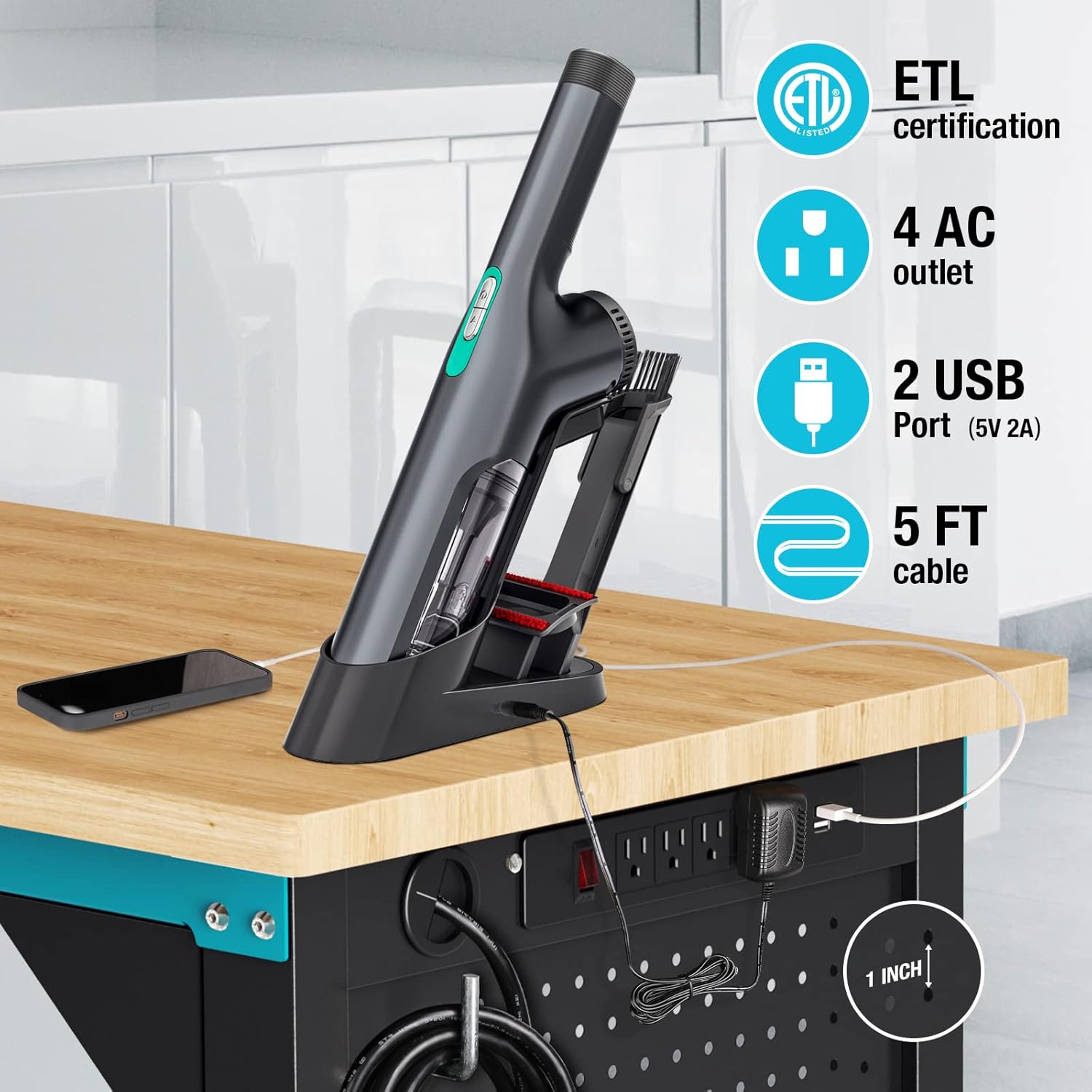 - 【Power Strip & Peg Board】The DURATECH workbench comes with power outlet and peg board. The outlet 4 AC outlets and 2 USB-A ports will supply you with power when you need to plug in your work equipment. Pegboard panels are a great tool for organizing and storing your tools, so you can customize your layout to suit your needs.