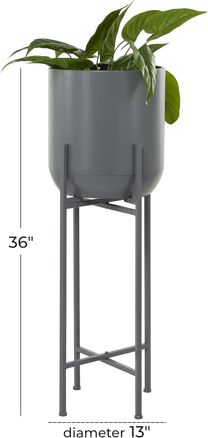Deco 79 CosmoLiving by Cosmopolitan Metal Round Planter with Removable Stand, 13" x 13" x 36", Dark Gray