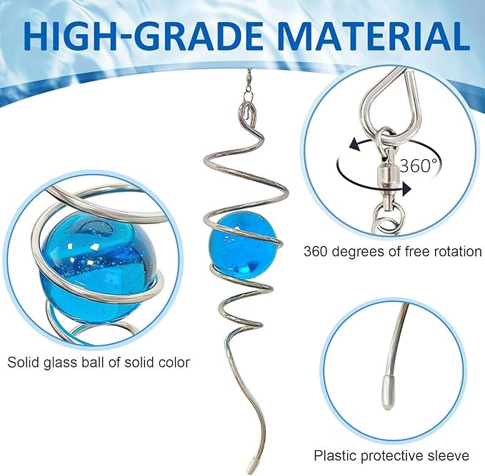 - 【 High Quality Spiral Tail Decor 】This stainless steel wind spinner spiral tail is made of 304 stainless steel wire, the colored ball is made of pure solid K9 crystal glass material. The crystal glass balls combined with stainless steel wire are colorful shining. Exceptionally resistant to inclement weather, the ball of the spiral tail will not fade even in direct sunlight. There are many colors to choose from for this decorative spiral wind-spinner to match any decor.