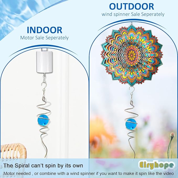 - 【 Spiral Tail Wind Spinner Stabilizer 】Wind spinner spiral equipped with a 360° swivel hook. The spiral tail can't spin by itself, needs to be combined with wind spinner motor (not included). Or use our wind tail as a stabilizer for the 3D wind spinners. Not only can the hanging wind spinner can drive the spinner spiral to rotate, but also the spiral for wind spinners can improve the stability of the wind spinner when rotating.