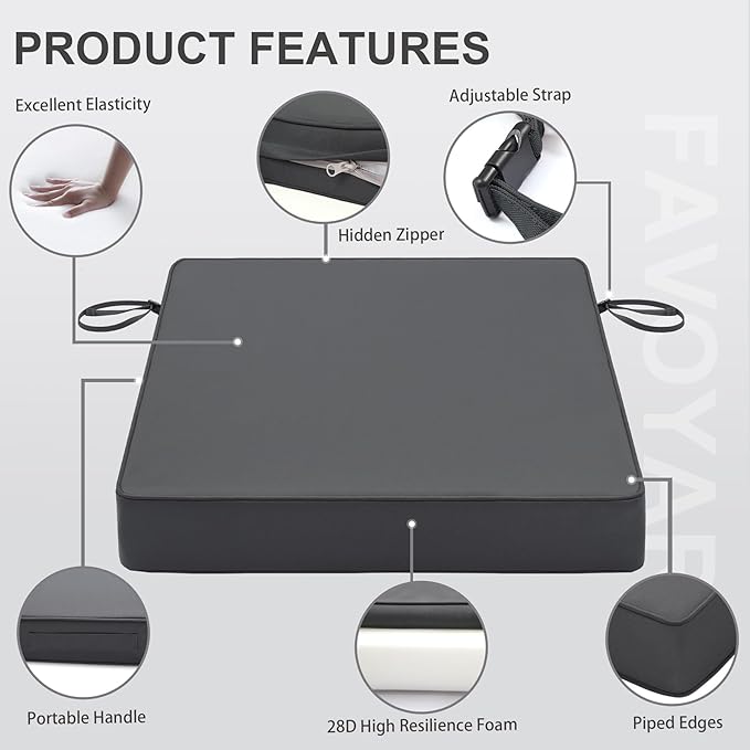- Waterproof Cover - The Favoyard outdoor seat cushion has a TPU coated cover with hidden zipper design, all-round waterproof to keep rain out and protect the inside foam. Also, these chair cushions for outdoor furniture are super easy to maintain and clean, just wash the cover by washing machine.