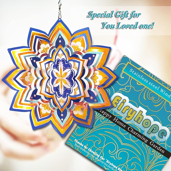 - 【 Premium Kinetic Art Wind Spinner 】The metal wind spinner is artistic and durable. Made of premium stainless steel, laser cut, hand polished and painted with epoxy protection, this stainless steel wind spinner is highly weather resistant, rust resistant and reflective, adding colour and movement.