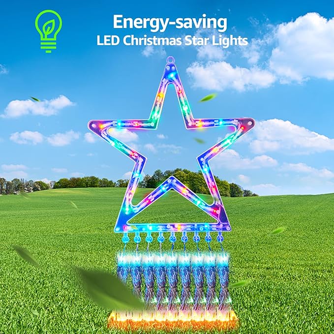 - Safety and Energy Efficiency: To ensure absolute safety, the star Christmas lights have been thoroughly tested and fully complied with the UL certification standard. Furthermore, the product uses a new type of energy-saving LED lamp beads, characterized by high brightness and low energy consumption, allowing 80% energy savings.