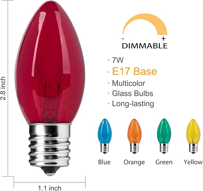 • 100+4 light bulbs included: C9 E17 base light sockets