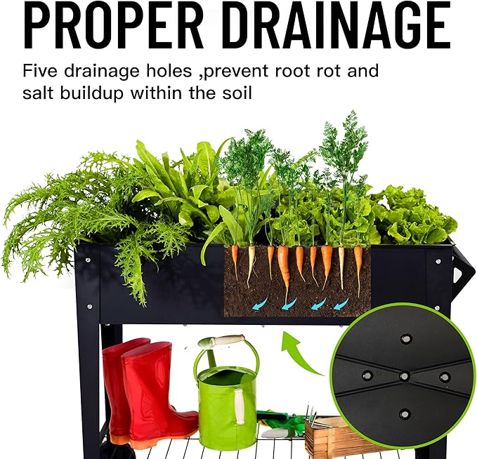 - 【400LBS Heavy-Duty & Anti-Rust】 Made of powder-coated steel (not cheap wood!), withstands 400lbs without bending. 3x thicker coating vs standard planters prevents rusting for 3+ years – even in rain/snow.