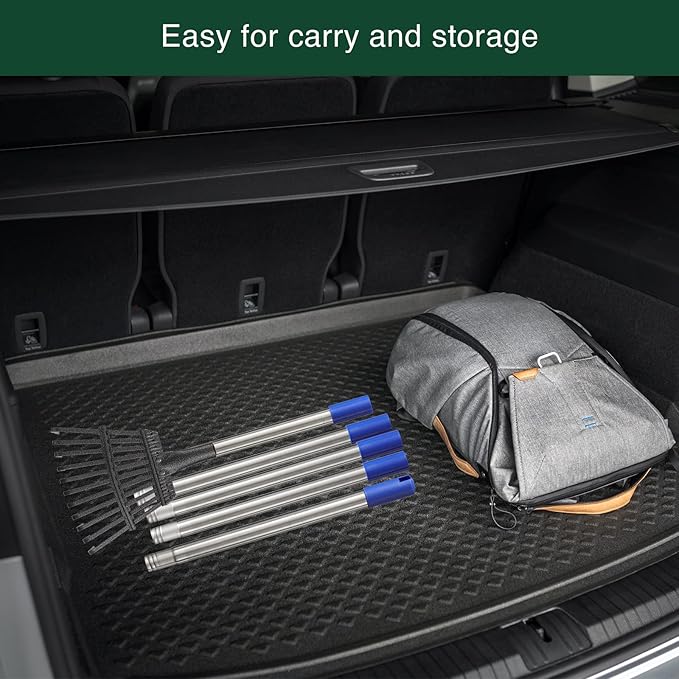 - 11 sturdy metal tines head will help you easily clean all kinds of leaves, pine needles, small debris, grass clippings under hedges, flower beds, chicken coops, narrow areas without damaging plant feeder roots.