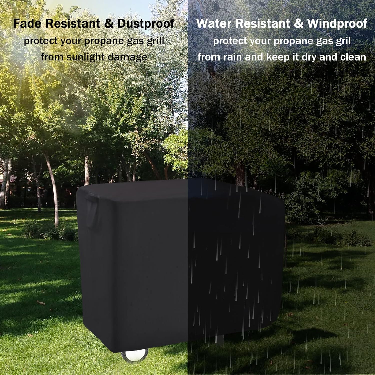 - USER-FRIENDLY DESIGN: The outdoor grill cover has two handles for easy on and off. The two snap designs on the side ensure that the cover fits tightly to the grill.