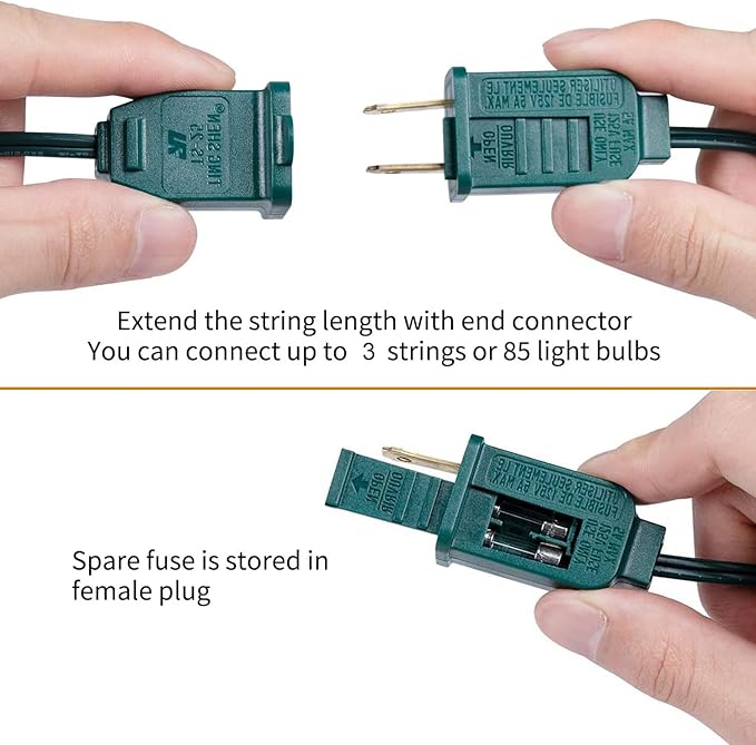 - [Easy to Install] Christmas lights string bulbs socket has a clip on side, can be easily hang it in patio, christmas tree, roofline, porch, create an elegant gorgeous atmosphere.