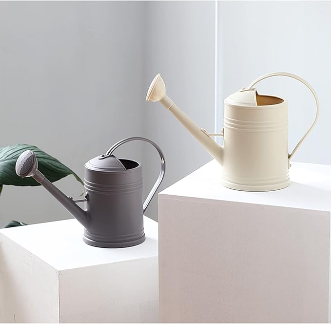 - Detachable Spray Head- Plastic watering can. If you are looking for a long spout watering can with sprinkler head, this one is a good selection, the spray head of this cute watering can can be disassembled, so you can choose between a steady stream or a gentle shower, it's a good indoor watering cans for house plants