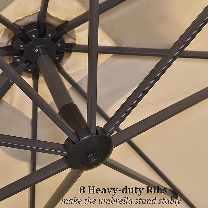 PURPLE LEAF 9' X 11.5' Patio Umbrella with Base Outdoor Cantilever Rectangle Umbrella Offset Umbrella with 360-degree Rotation for Garden Deck Pool Patio, Beige