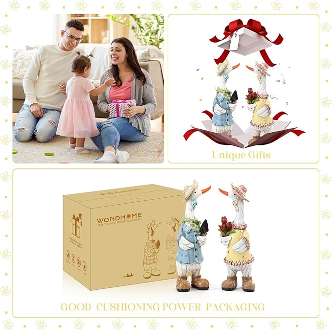 • High-Quality Materials:The couple duck state is handmade,made of a durable resin stone material and eco-friendly paint.It is non-toxic and has no odor,doesn't fade in the sun and water to keep your statue always looking new.