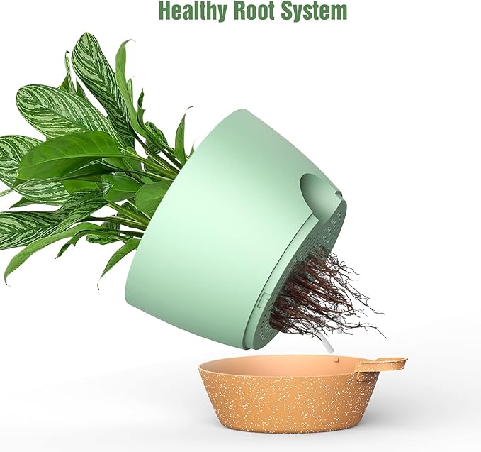 - [Self Watering Pots with Extra 40oZ Capacity Deep Reservoir] 10 inch plant pots with deep reservoir that store extra water when travel or business trip. 40oZ capacity water can be auto-watering for plants over 7~14 days.