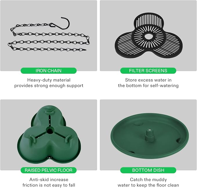 • Different Combinations: You can stack 2 or 3 or 4 tier; This planter can be hang with chains or used on a cylindrical rod