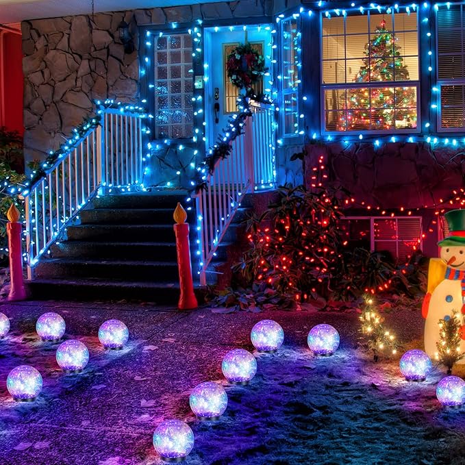 - Quality and Waterproof: glass decorative balls with lights are made of plastic and cracked glass, waterproof and can withstand harsh weather conditions, like wind, snow, rain, and run smoothly; The location of solar cell panel is inside globe light, which can effectively keep it away from dirt, debris and will not get broken easily or replacing frequently
