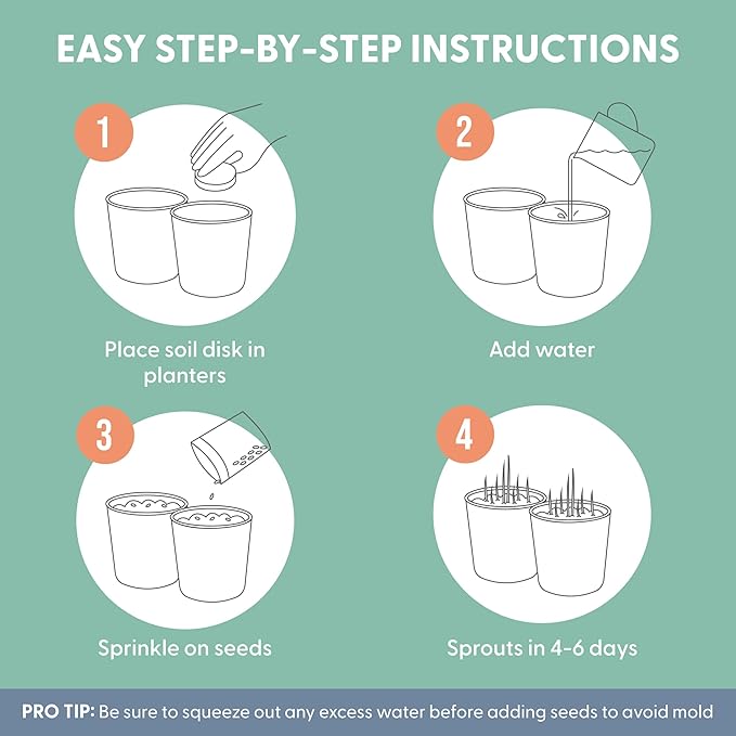 - Cat Plant Magic: Add a soil disk, a splash of water, and a sprinkling of seeds, and watch your cat grass planter kit sprout like magic. Read our Cat Ladies insert for easy-to-follow instructions and growing tips, and watch your organic cat grass sprout up to 4” in just 4–7 days. No green thumb required.