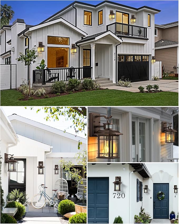 - 【Distinctive Design & Wide Application】This exterior light fixture is made of high-hardness tempered glass. The seed glass lampshade with metal lines in ORB color creates a distinctive modern style and a cozy atmosphere for you. This exterior wall light is especially suitable for outdoor decoration. Perfect for placing on front doors, garage entrance walls, porches, backyards, and commercial use as night security, area, perimeter lighting, etc.
