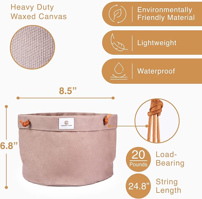 Large Waxed Canvas Handmade Hanging Planter for Indoor/Outdoor Plants, Hanging Basket Plant Holder Stone Gray