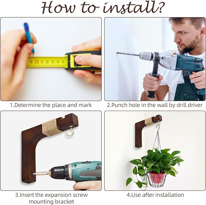 - 【Easy to Install】Our plant hanger bracket hooks have two screw holes of each and includes mounting hardware for each hanger (4 mounting screws and 4 drywall anchors). You can follow these steps to complete installtion within miniutes : find the place where you want to install, mark the hole, drill the screw hole as you makred, insert the drywall anchors then install the hanger hooks and complete.
