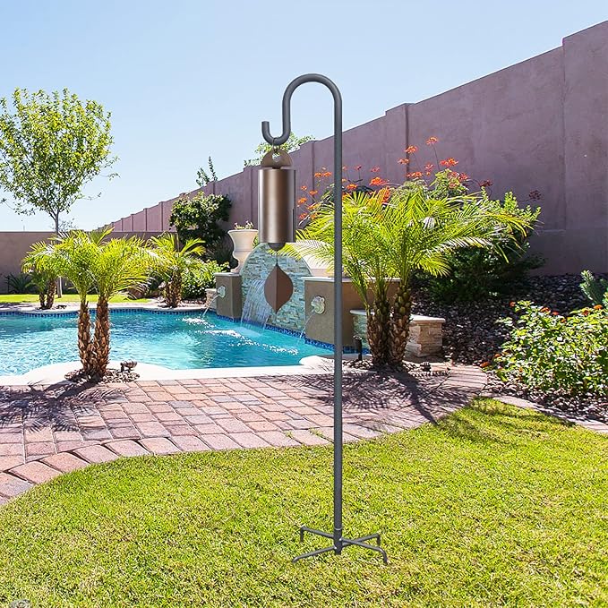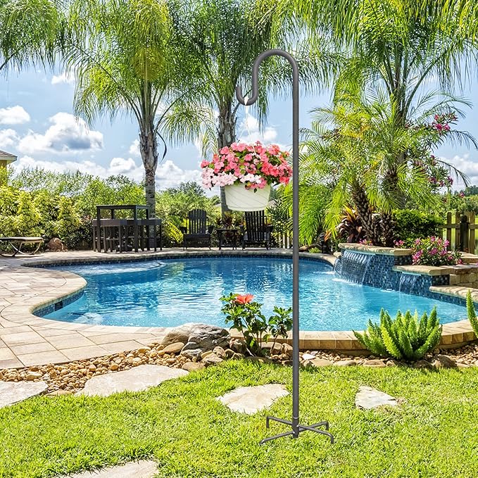 - 【Multipurpose Bird Feeder Hook for Outside】This shepherd hook is perfect for hanging almost anything you want in the garden or patio, such as hummingbird feeders, birdhouses, solar lights, lanterns, wind chimes, small flower baskets, succulents, wedding decorations.