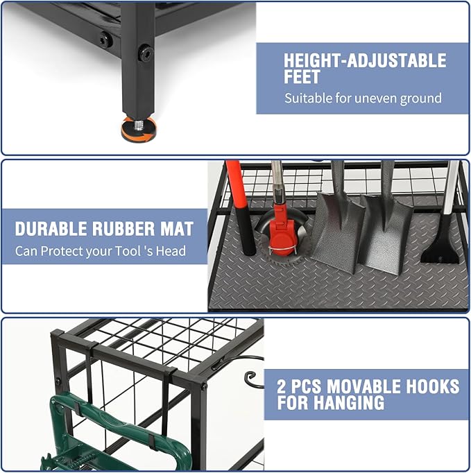 - STRONG DURABLE STEEL CONSTRUCTION: This garage tool rack and shed organizer made of a durable coated steel frame thatβs sturdy enough to withstand indoor or outdoor use. The garage organizer offers long-lasting strength and impressive performance, you will not worry about collapsing like plastic organizer