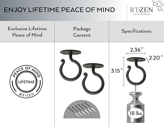 RTZEN Plant Hangers Outdoor or Indoor - Wrought Iron Metal Hanger Indoor Hook - Heavy Duty Wall Bracket Hooks for Hanging Plants Baskets Lanterns Wind Chimes - 2 Pack (Black Ceiling Hooks)
