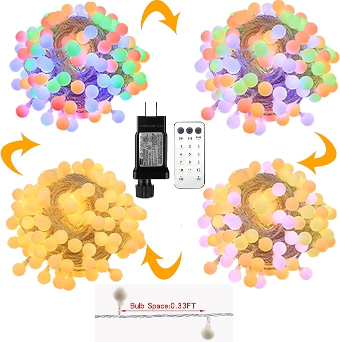 - 4 in 1 Color Changing String Lights: Plug in String Lights can switch freely between Warm White and Multicolor, 150 LED 65.6ft(49.2ft String Lights,16.4ft Lead Wire), You would like the multiple display options and being able to have either all warm white, all color, or both together.