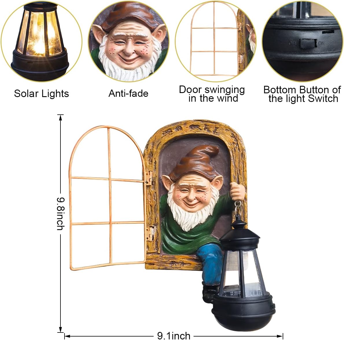- 🌳 UNIQUE DESIGN SIZE - The swinging window adds a touch of realism to the outdoor gnome's design, as it appears as if he's climbing out of the window in search of freedom. Its optimal size of 5.74” x 9.84 ”x 3.54” fits most garden trees perfectly, adding a touch of charm to your outdoor space.