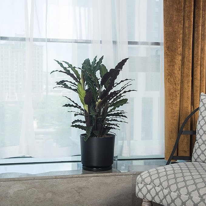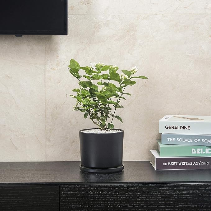 Ekirlin 7 inch Plant Pots,Ceramic Flower Planters Indoor,Modern Succulents Containers with Drain Hole Saucer,Decorate Home,Office & Outdoor (Black)