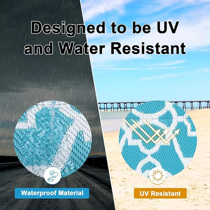 • Easy Maintenance Waterproof Patio Rugs : Compared with other camper rugs, this camping outdoor rug is simply wipe or hose off; For a deep clean, you can use a wet soft cloth with mild soap and rinse with water.