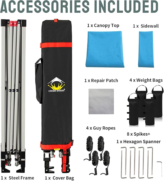CROWN SHADES 10x10 Pop Up Canopy with 1 Side Wall - Beach Tent with One Push Setup - Outdoor Sun Shade for Events, Parties, Camping - Gazebo with STO-N-Go Cover Bag (Sky Blue)